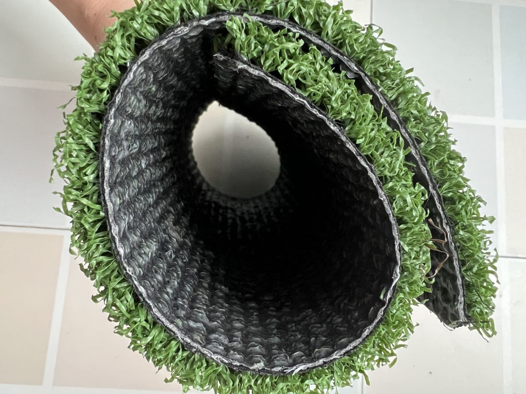 A: Not afraid. Our artificial grass backing adopts a highly permeable design, with a drainage hole density of 8 to 10 per square meter. During rainy days, water seeps through quickly and there will be no water accumulation. Moreover, both the grass fibers and the back have excellent water resistance. After being soaked in rainwater, they will not mold or deform, and their service life will not be affected.