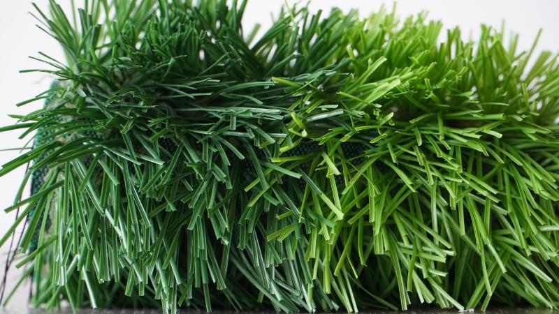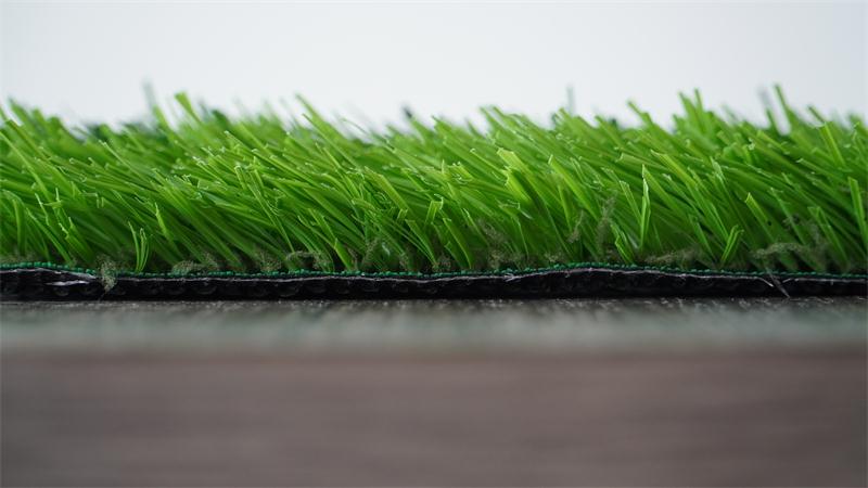 This grass adopts one-off extrusion without yarn twisting process, and all the yarns are wrapped with resilient thatches as protective layer, which will reduce the damage on the yarns during the production, and maximum ensure the integrity of the yarns. Resilient thatches can be merged well with the glue in the coating, which can increase the yarn’s withdraw force. The improvement of the additives and backing cloth has highly promoted the anti-aging, anti-UV and wear-resistance ability of the well done grass.
