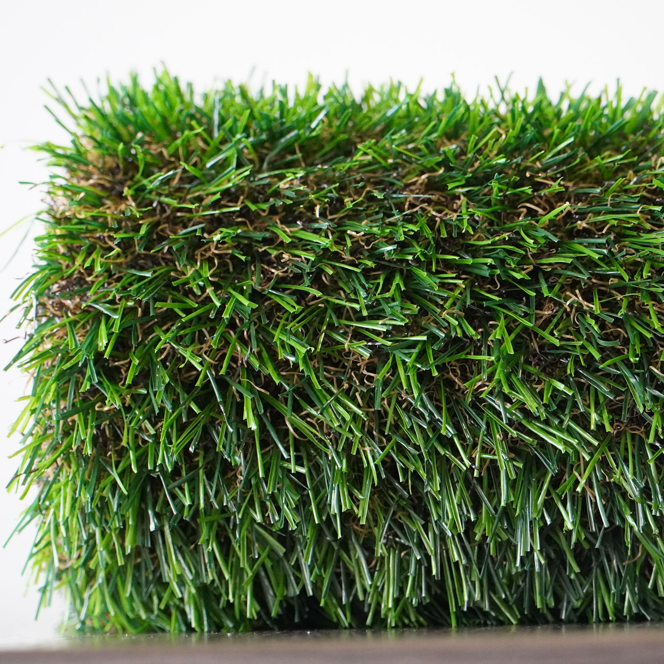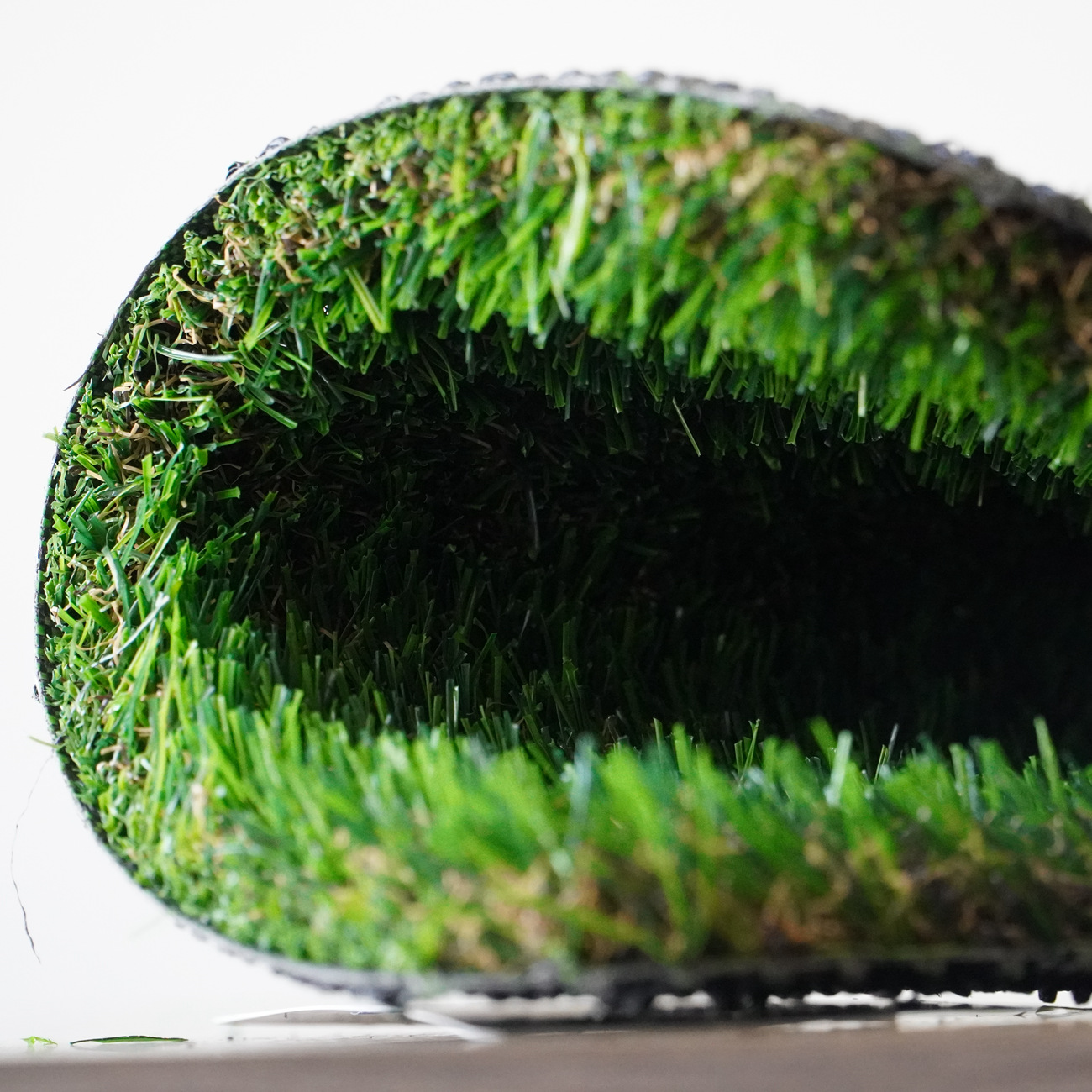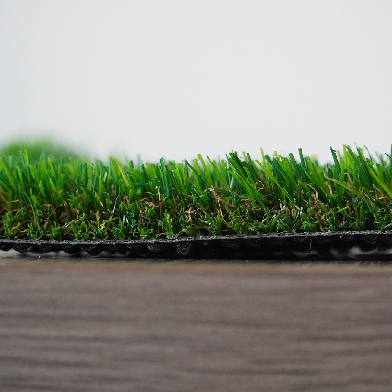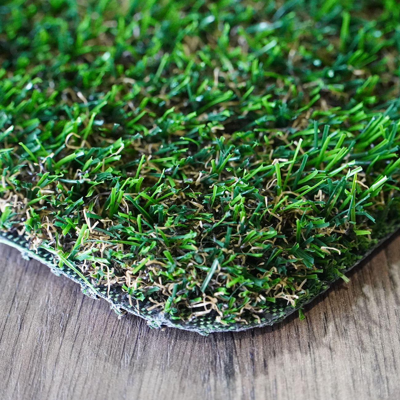 Landscaping artificial grass has strong anti-UV performance to keep ever green and anti-aging.Eco-friendly, strong UV stability, fire proofing and weather resistance make lawn safe and green all year round green.