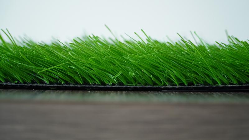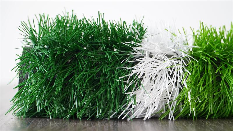 This grass adopts one-off extrusion without yarn twisting process, and all the yarns are wrapped with resilient thatches as protective layer, which will reduce the damage on the yarns during the production, and maximum ensure the integrity of the yarns. Resilient thatches can be merged well with the glue in the coating, which can increase the yarn’s withdraw force. The improvement of the additives and backing cloth has highly promoted the anti-aging, anti-UV and wear-resistance ability of the well done grass.
